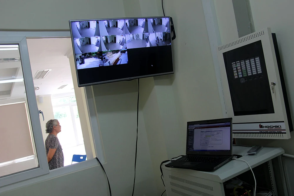 Với 10 camera được lắp đặt ở các hành lang, trước cổng và khuôn viên phía sau của KTX. Hai màn hình camera gắn tại phòng bảo vệ, phòng ban quản lý để theo dõi hoạt động chung, đảm bảo an toàn cho sinh viên trong KTX
