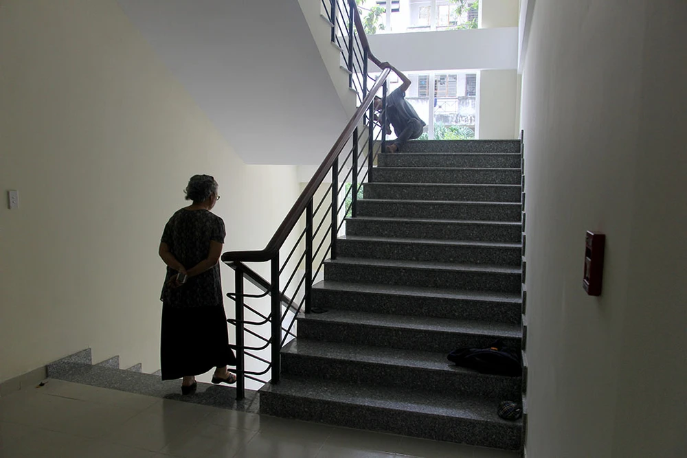 KTX không lắp hệ thống thang máy, các sinh viên di chuyển bằng cầu thang bộ được thiết kế khá rộng