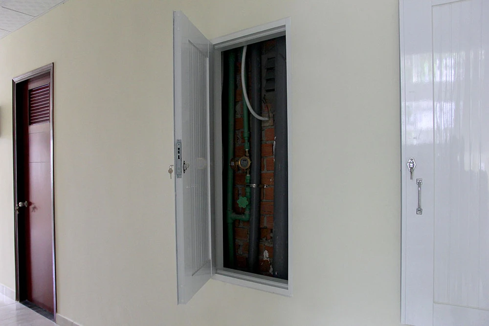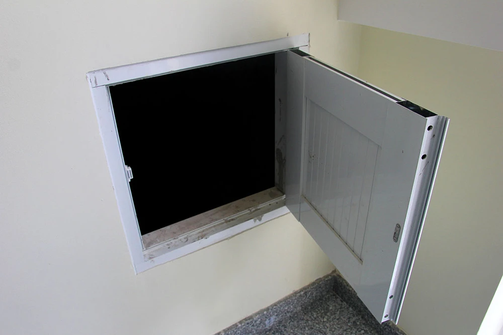 Hộc bỏ rác ở mỗi tầng dành cho sinh viên. Sau khi cho rác vào túi ni lông, sinh viên bỏ vào hộc rác sẽ có nhân viên dưới tầng trệt thu dọn và vệ sinh
