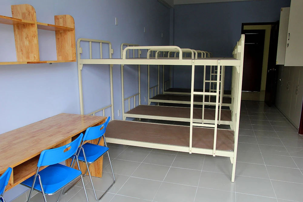 Với 54 phòng ở, mỗi phòng rộng 45 m2, có bốn giường đôi cho tám người. Khi vào ở, sinh viên sẽ được cung cấp miễn phí chăn, gối, màn, chiếu