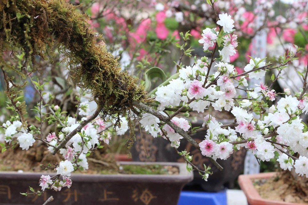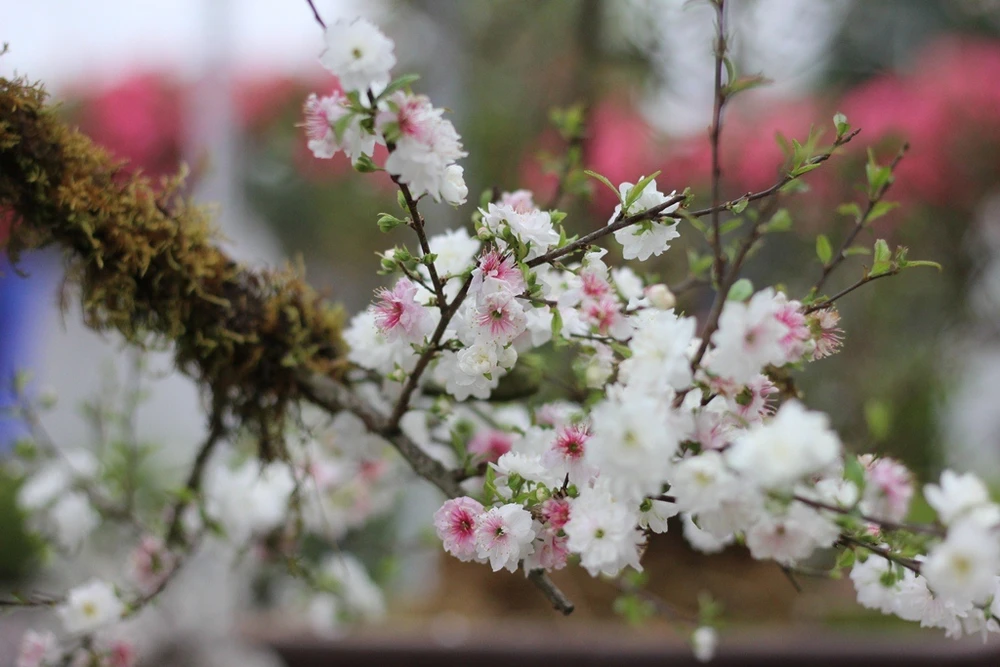 Hoa trên cây có hai màu gồm trắng và hồng đậm. Hai sắc hoa quện vào nhau, tạo nên một vẻ đẹp đầy phong phú nhưng vẫn đồng nhất.