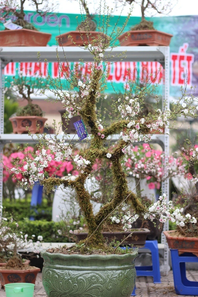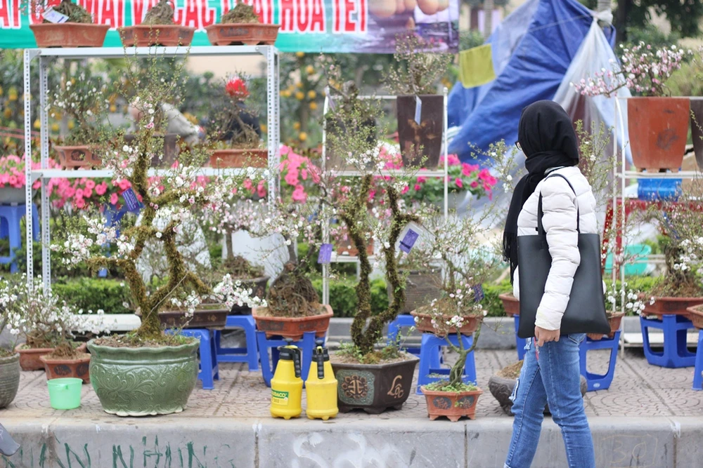 Hội chợ xuân trên đường Lạc Long Quân (Hà Nội) năm nay có hàng trăm loại hoa, cây cảnh, từ đào, mai, quất đến thanh long, tu líp,... Trong đó, nhất chi mai nhận được sự chú ý của nhiều người vì "nhỏ nhưng có võ".