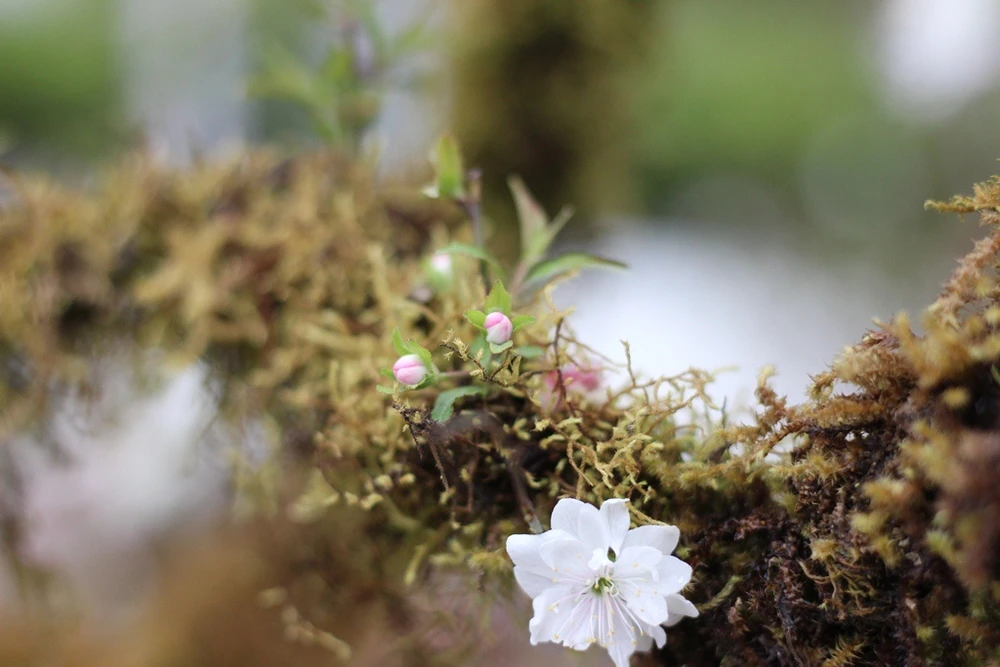 Bao trùm thân cây là một lớp rêu, tạo nên vẻ cổ kính.