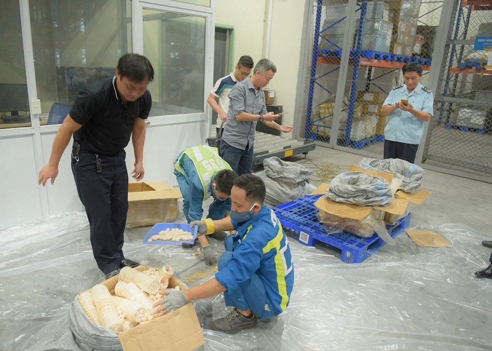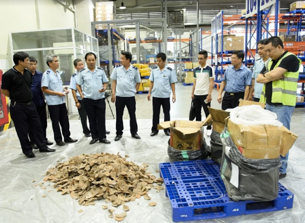 Ngày 30-9, thông tin từ Tổng cục Hải quan, nhiều đơn vị của ngành này vừa phối hợp phát hiện và thu giữ một số lượng cực lớn vẩy tê tê và các sản phẩm làm từ ngà voi tại sân bay Nội Bài.