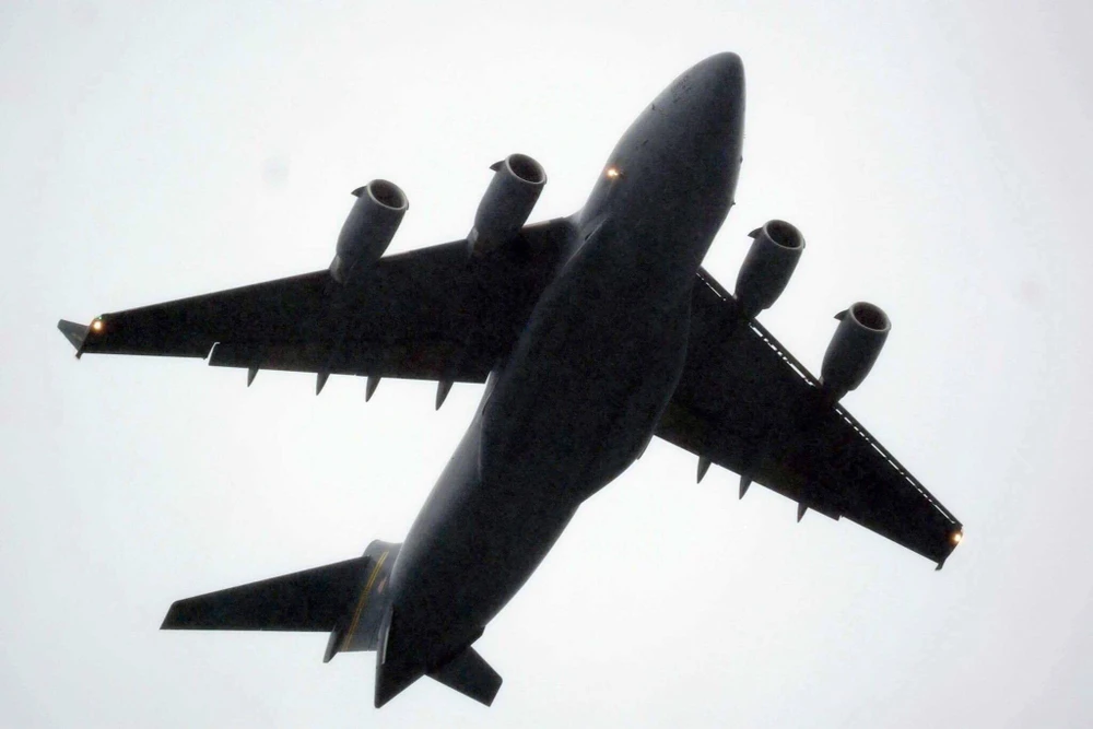 Máy bay vận tải C17 đã đáp xuống sân bay Đà Nẵng trong điều kiện mưa lớn.