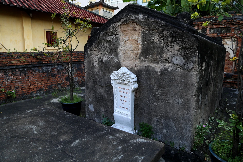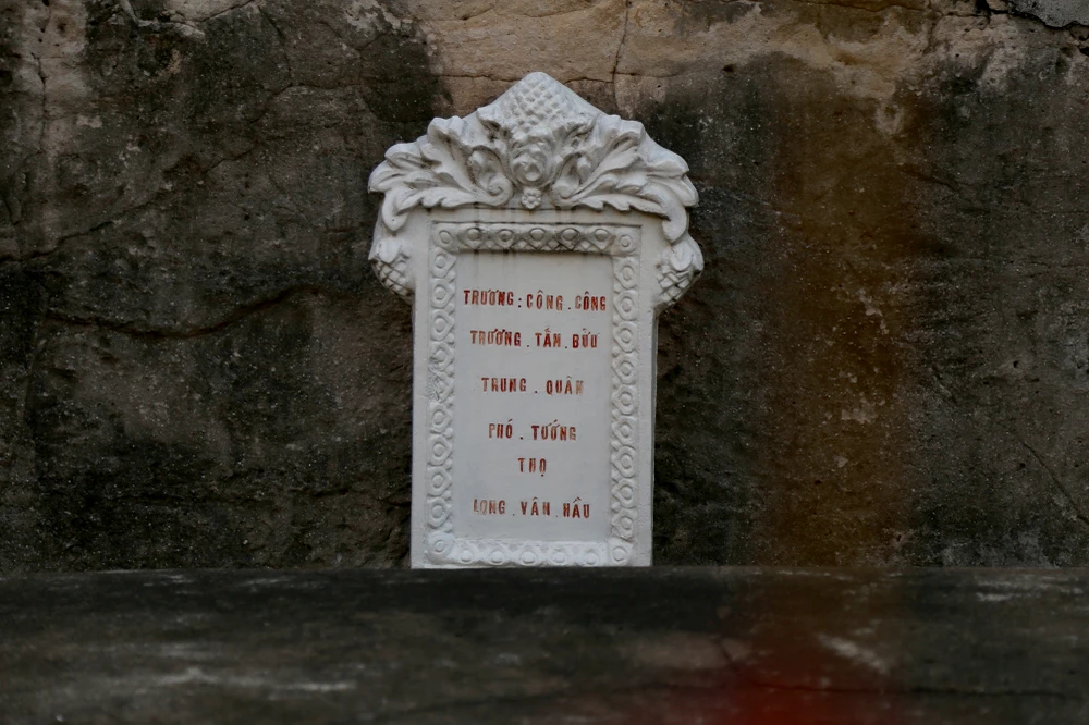 Tấm biển đặt ở bình phong tiền và tấm bia này đều viết bằng chữ Quốc ngữ (nó mới quá, khiến người xem có cảm giác như bị “đặt nhầm chỗ”).