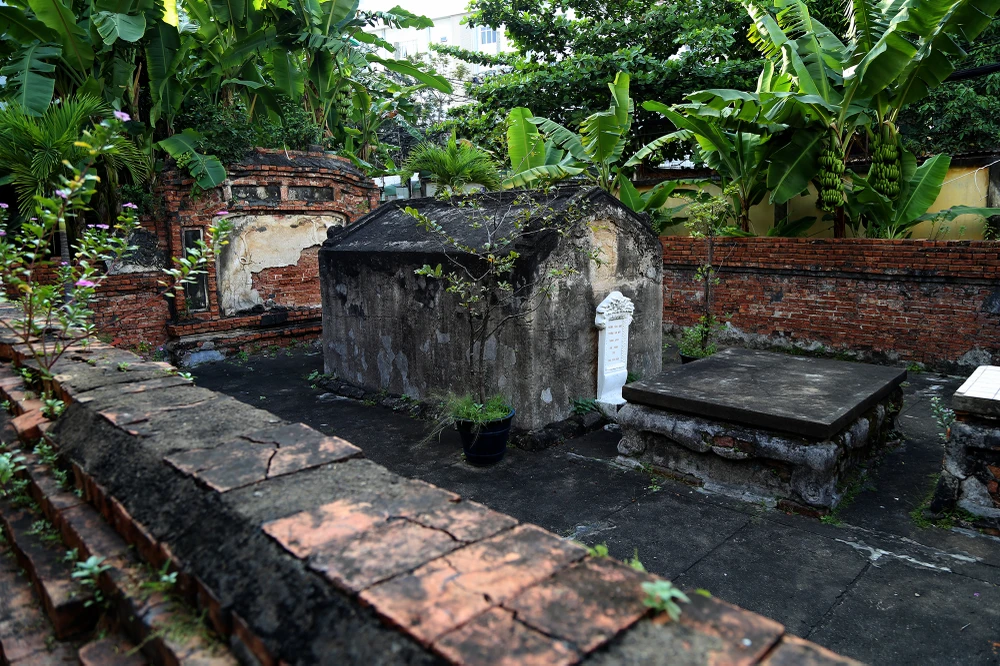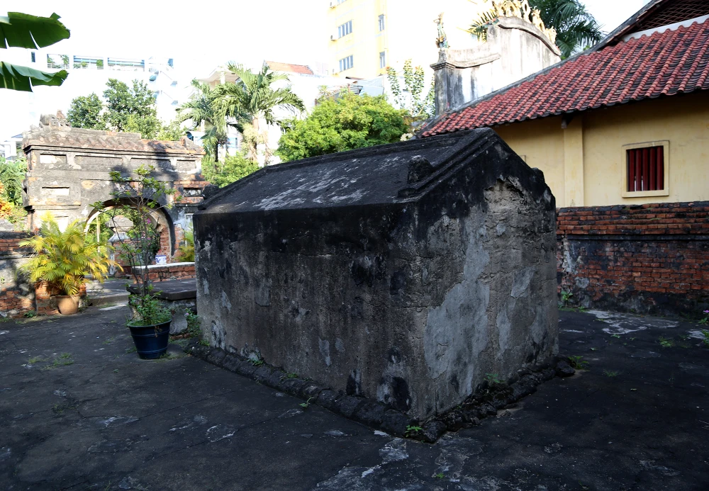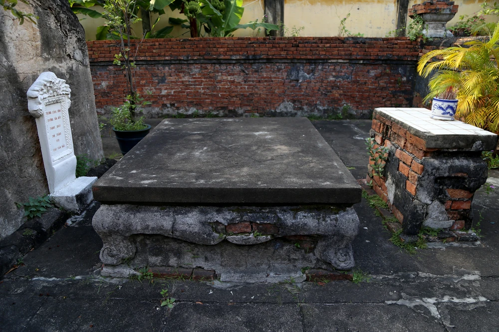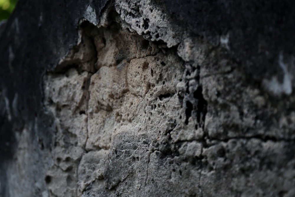 Vết bong tróc mặt sau ngôi mộ.