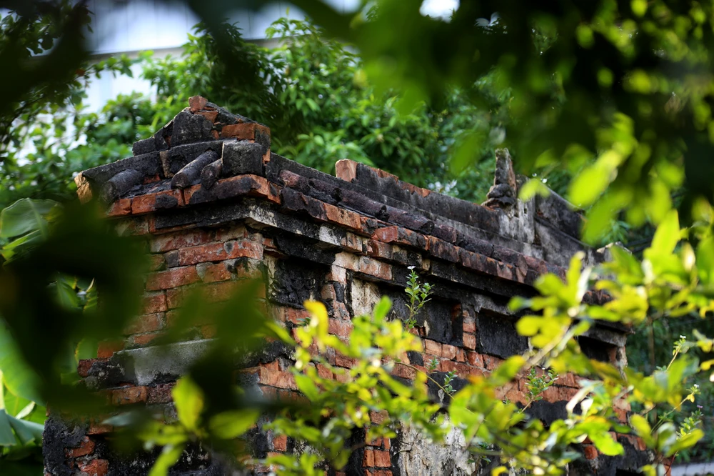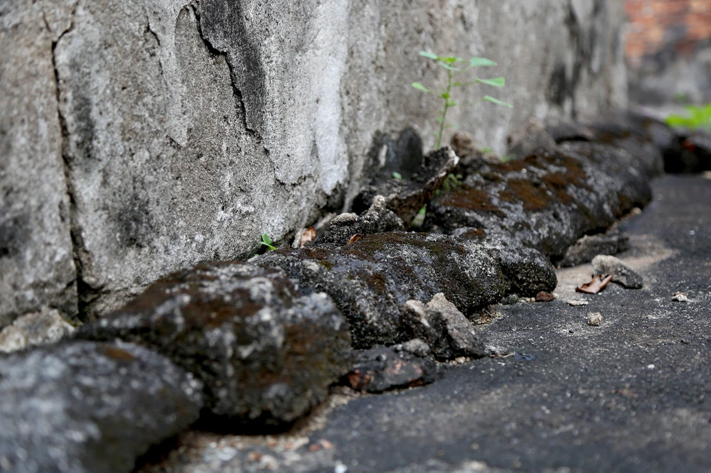 Những vết nứt và rêu bám đầy phía sau mộ.