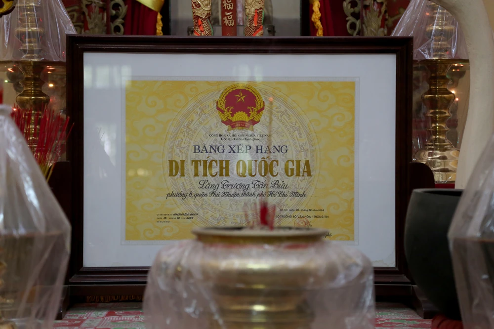 Bằng xếp hạng di tích quốc gia lăng Trương Tấn Bửu.