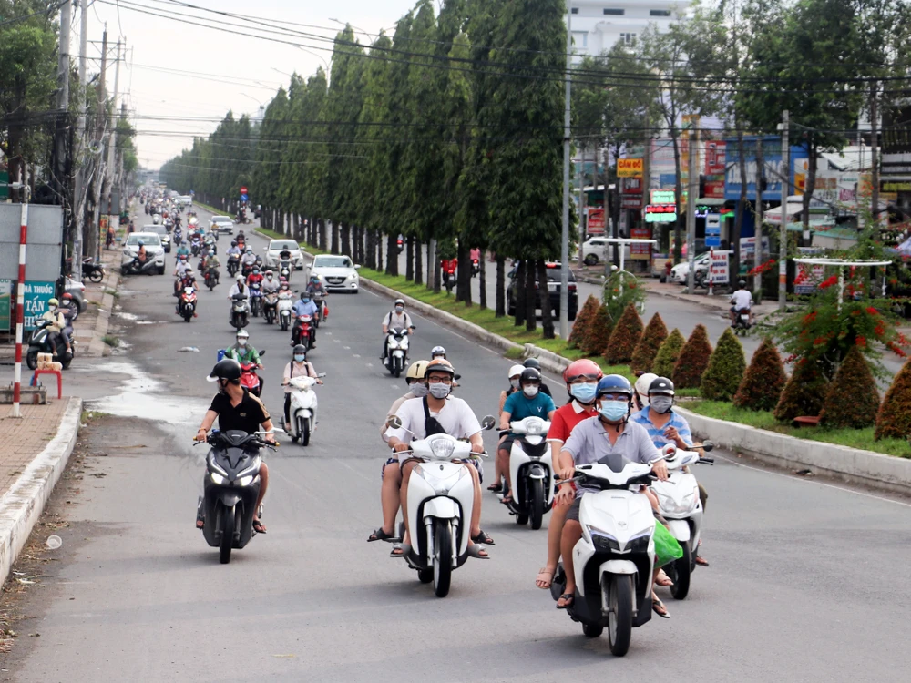 Đường Nguyễn Văn Cừ nối dài có đông người dân ra đường sau khi nới lỏng giãn cách.
