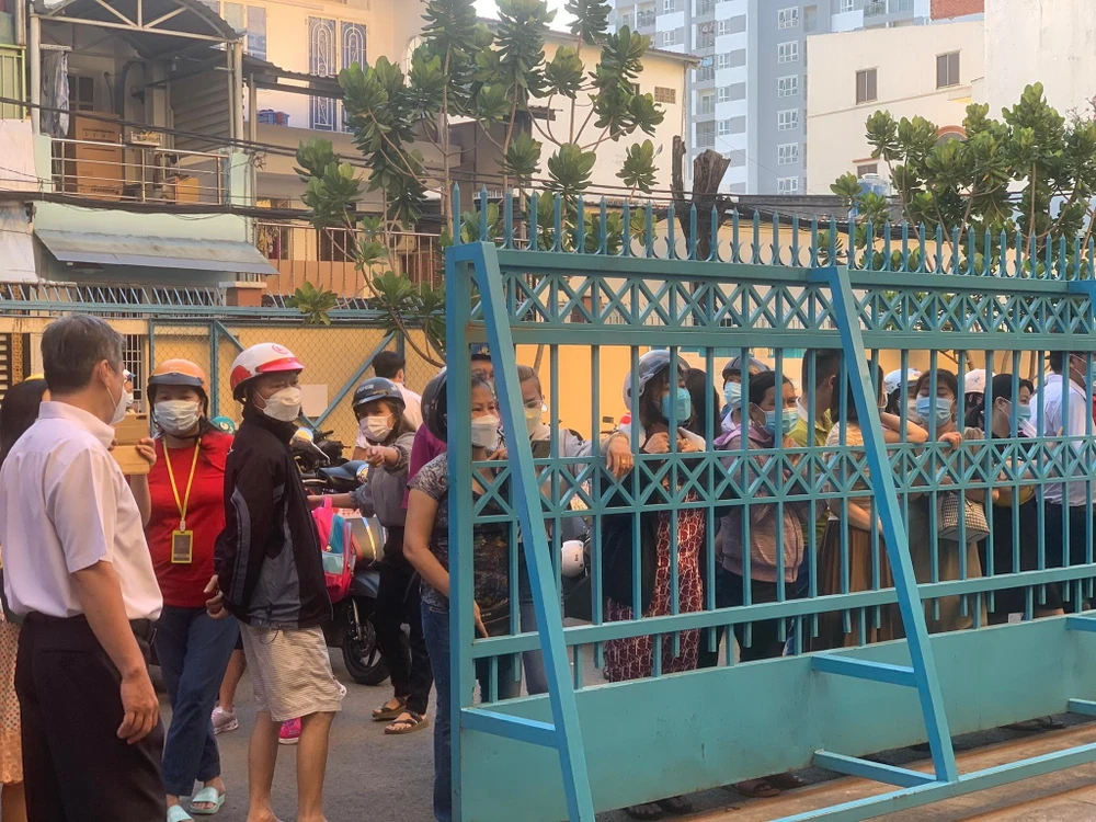 Phụ huynh đưa con đến trường phải ở ngoài cổng, không được vào trường để đảm bảo an toàn vì học sinh rất đông. Riêng các học sinh lớp 1 sau khi vào cổng sẽ tập trung tại khu vực sân trường để nhận thẻ bảng tên giúp giáo viên dễ dàng nhận diện.