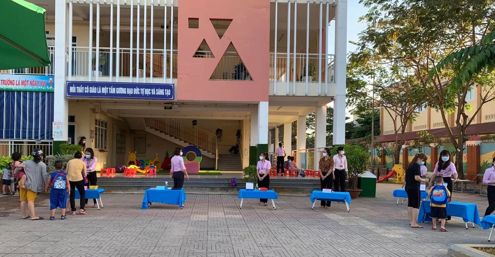 Tại Trường mầm non Hoa Hồng (phường Hiệp Bình Phước, TP Thủ Đức), sáng nay, gần 300 trẻ khối mẫu giáo đã bắt đầu đến trường học trực tiếp. Riêng khối nhà trẻ dự kiến sẽ đến trường từ đầu tháng ba tới.