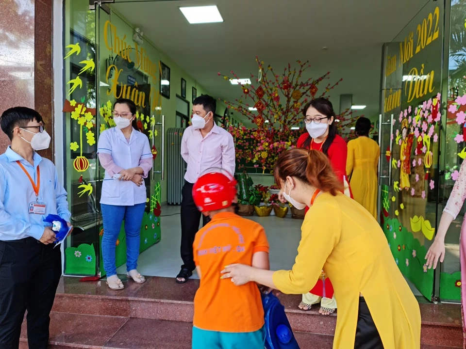 Nhà trường cũng yêu cầu khi phụ huynh đưa học sinh đến trường phải tuân thủ “5K”; điền phiếu đăng ký cho trẻ đi học sau Tết và hàng ngày phải khai báo y tế. Nhà trường cũng tạm thời không tổ chức ăn sáng tại trường như thường lệ.