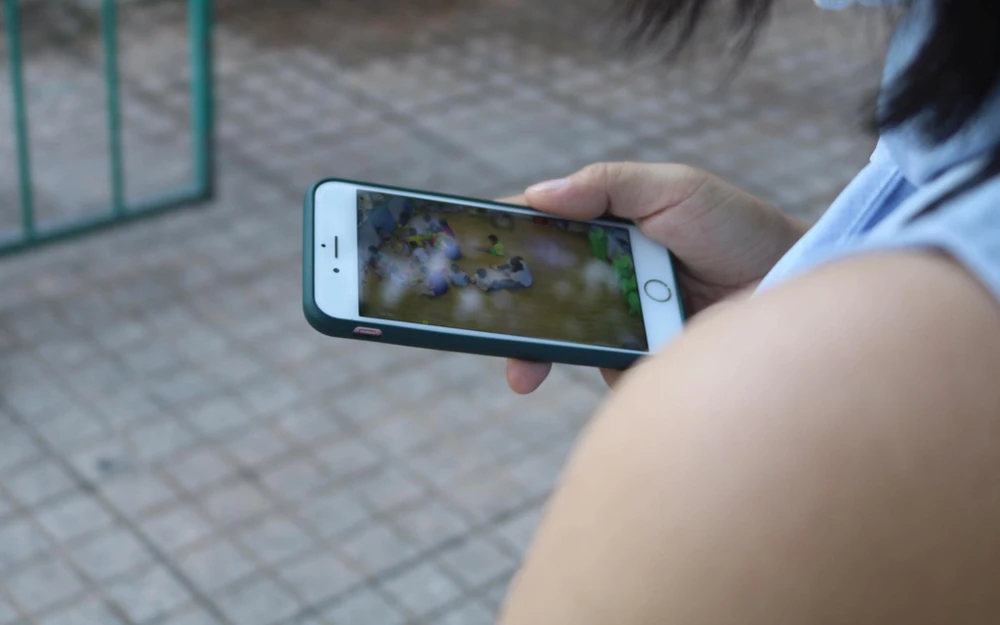 Chị Hương cài đặt camera của lớp học để tiện quan sát con mình. Ảnh: Tú Ngân