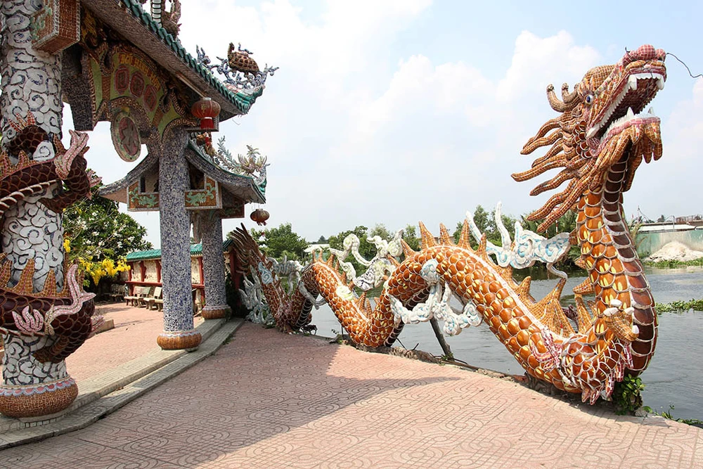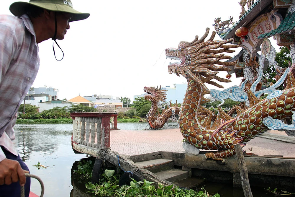 Điểm ấn tượng đối với những người từng đến với miếu không chỉ vì địa thế mà việc hình ảnh những con rồng được trạm trổ công phu từ cổng vào bên trong miếu.