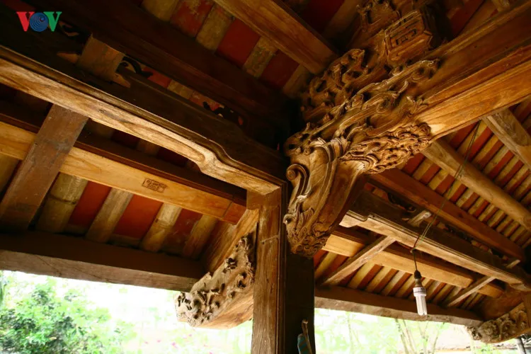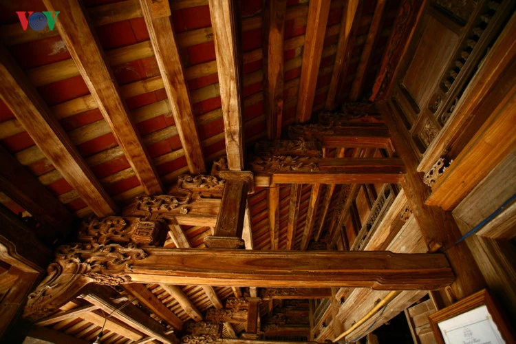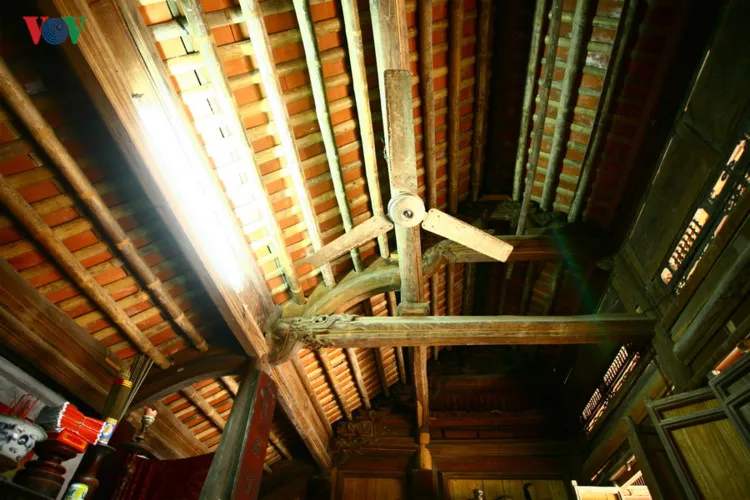 Hệ kèo gian chính theo lối chồng rường kẻ chuyền. Các hoành và rui được làm bằng tre.