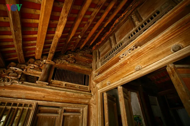 Trước khi trùng tu, ngôi nhà xuống cấp nhiều, do tuổi thọ đã quá cao của các cấu kiện gỗ (khoảng 200 năm), nên đã bị mối, mọt, hư hại; ảnh hưởng đến sự an toàn của kết cấu và thẩm mỹ kiến trúc. Ảnh: Các cấu kiện gỗ được chạm trổ rất công phu, đậm tính nghệ thuật dân gian.