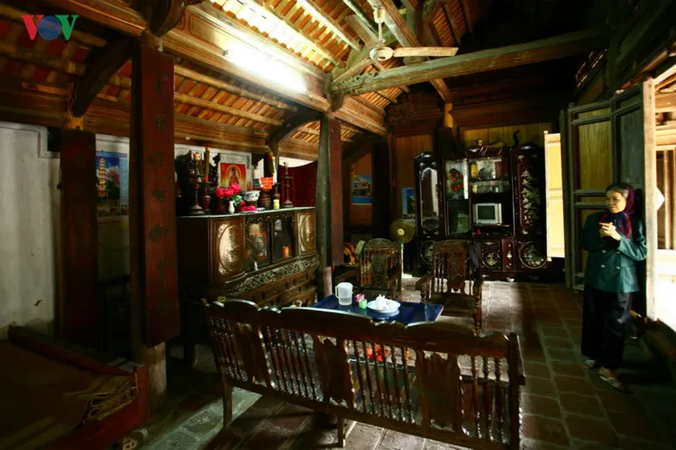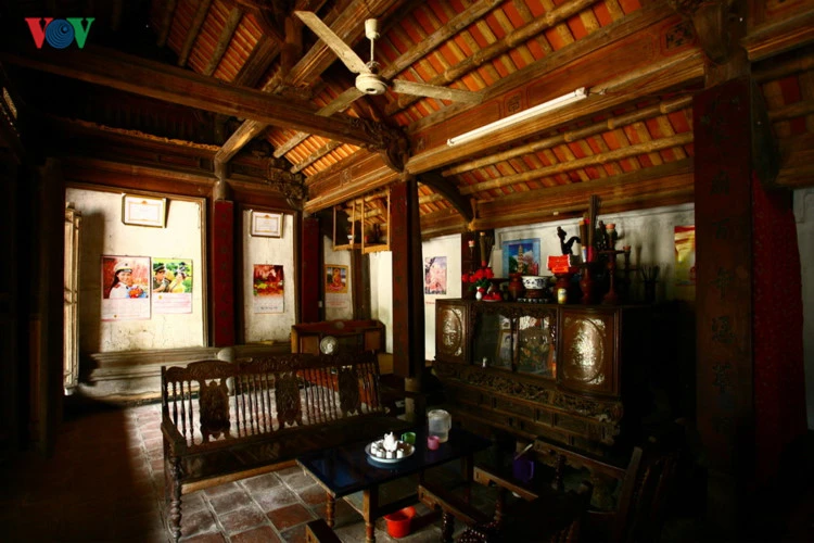 Ngôi nhà 5 gian được trùng tu có hai nhịp lòng nhà và một nhịp hiên theo chiều sâu; rộng 6m, dài 13m, cao 5m ở đỉnh mái. Ngôi nhà được đặt theo hướng đông nam, làm từ 9 loại gỗ khác nhau của địa phương như sến, táu, xoan, lác, xà đanh… Công trình có 29 cột gỗ; mái lợp bằng 16.000 viên ngói vảy cá; tường hậu dày 50cm được xây bằng gạch, các bức tường khác được thưng ván hoặc trát giấy nện.