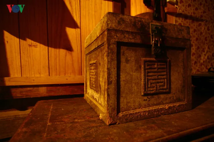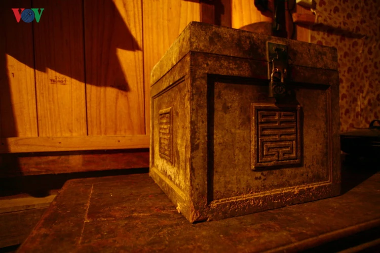 Chiếc rương gỗ đặt trong phòng ở, vật dụng có tuổi đời cùng tuổi ngôi nhà.