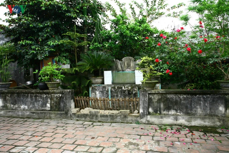 Phía trước ngôi nhà, qua lớp sân là bể nước và bình phong hình cuốn thư nằm trong vườn.