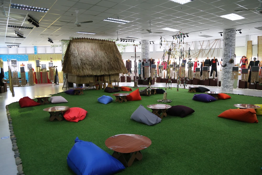 Không gian triển lãm, giới thiệu trang phục, nét văn hóa đặc trưng của 54 dân tộc Việt Nam trong nhà văn hóa.