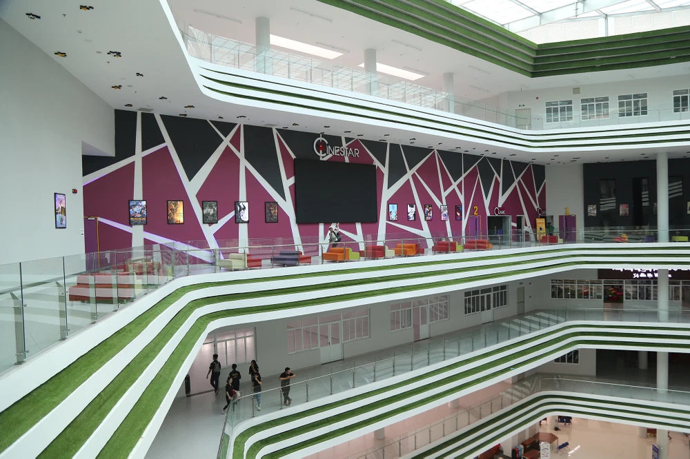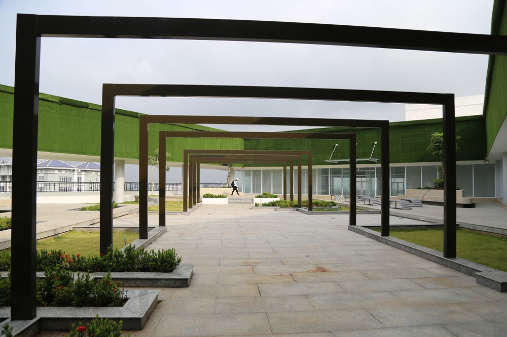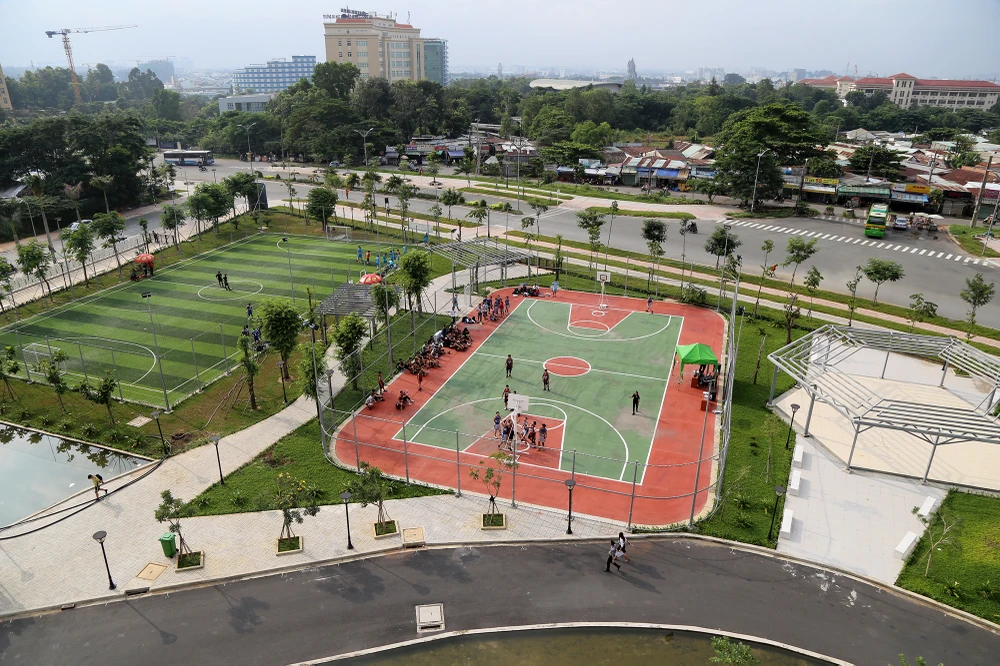 Bao quanh nhà văn hóa còn nhiều hạng mục khác như sân bóng đá mini, sân bóng rổ, sân khấu biểu diễn ngoài trời sức chứa 1.500 người, nhà vinh danh các gương mặt sinh viên tiêu biểu và cả không gian riêng cho sinh viên họp nhóm.
