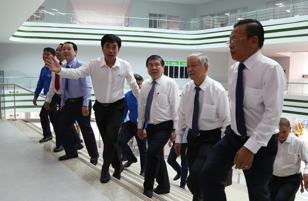 Chủ tịch UBND TP.HCM Nguyễn Thành Phong cùng các lãnh đạo TP tham quan nhà văn hóa sinh viên.