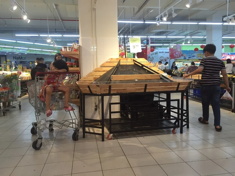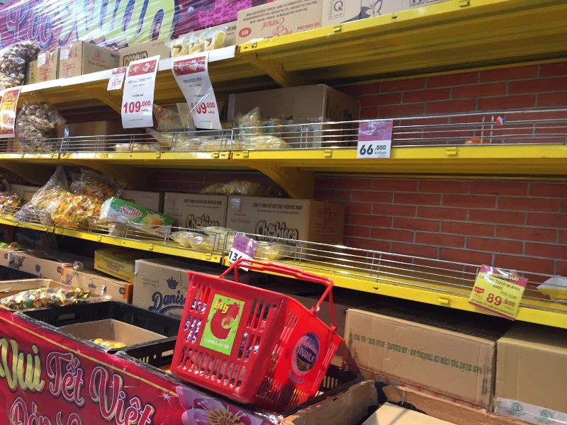 Vào trưa 30 tết không còn cọng rau nào trên các kệ hàng.