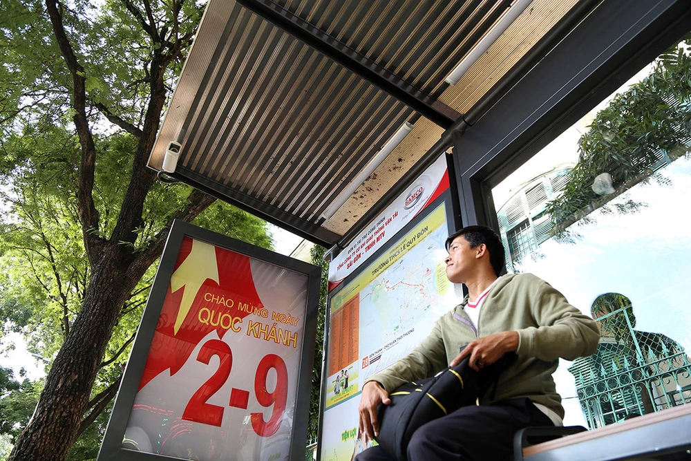 Nhà chờ xe buýt kiểu mới có kích thước 2 x 6,5 m được lắp đặt bảng thông tin điện tử, đèn chiếu sáng và camera quan sát, có lối lên xuống cho người khuyết tật.