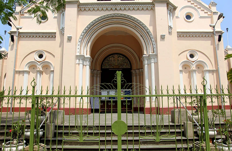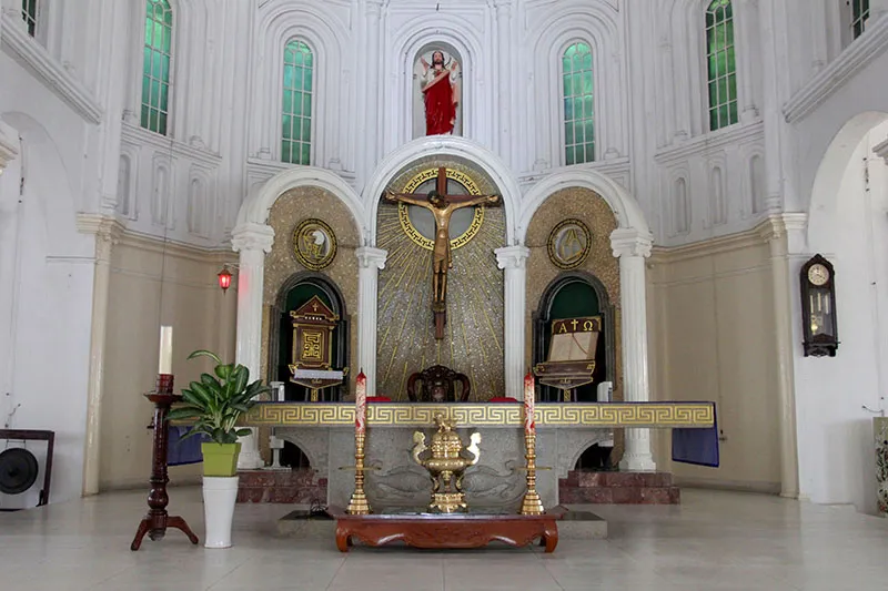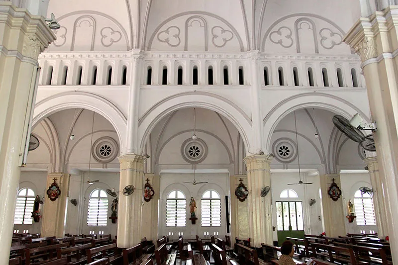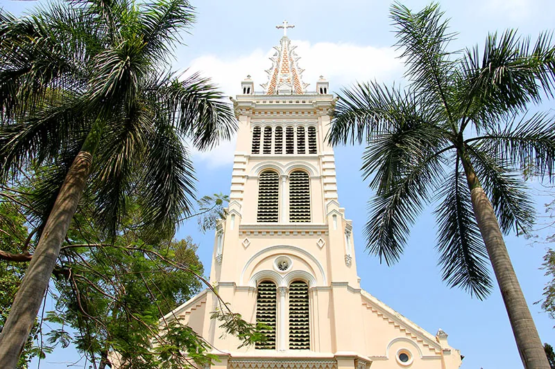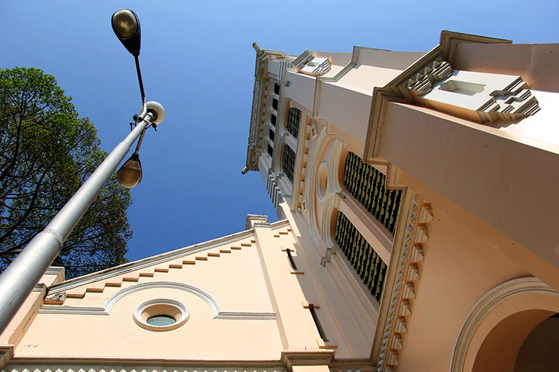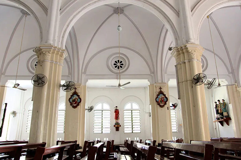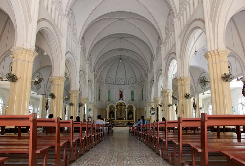 Nhà thờ được xem là quy mô nhất của khu vực Chợ Lớn, được xây theo phong cách Gothic phổ biến với các mái vòm nhọn, với nhiều mái vòm kết nối liên tục tạo cảm giác thánh đường rất dài. Ảnh: HOÀNG GIANG