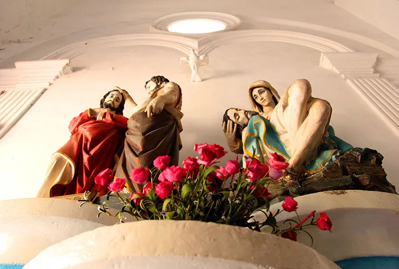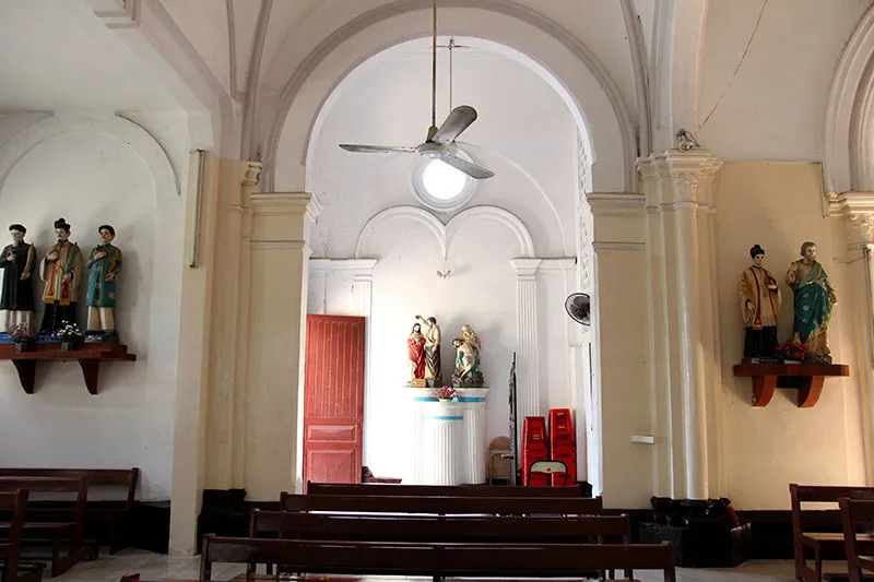 Các vị thánh được đặt bên trong nhà thờ. Ảnh: HOÀNG GIANG