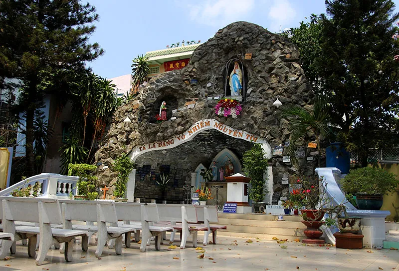 Khu vực hang đá của nhà thờ Chợ Quán. Ảnh: HOÀNG GIANG