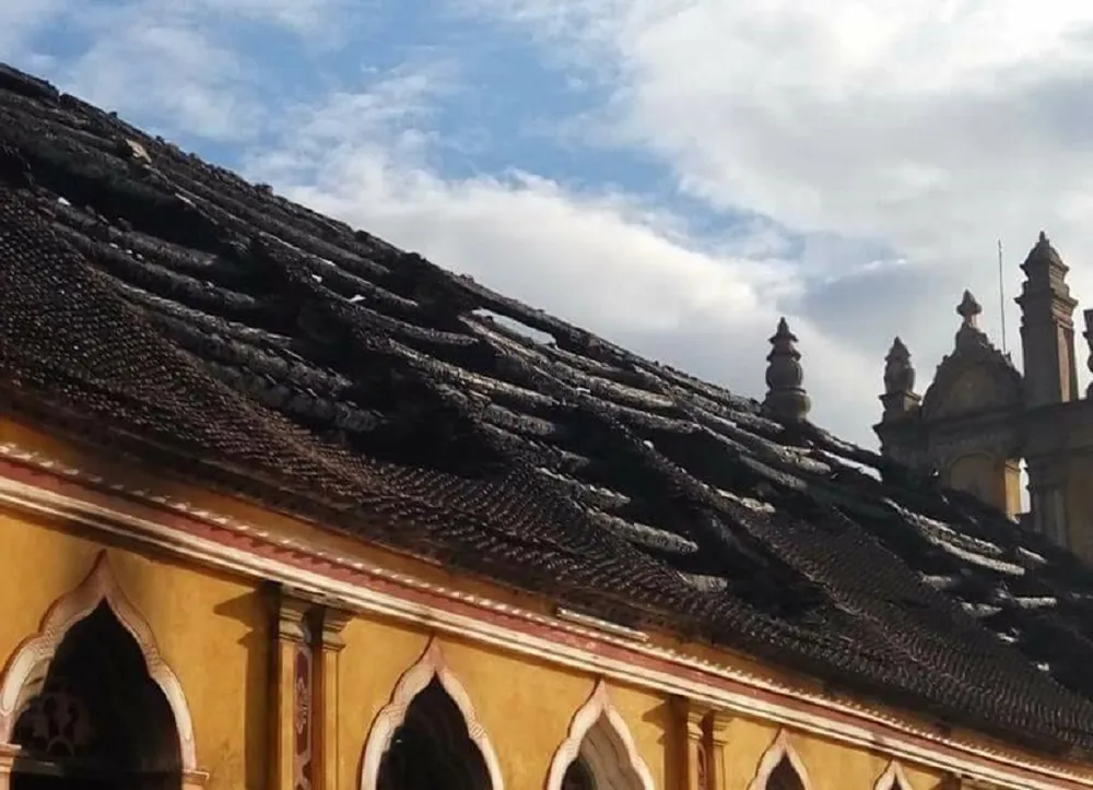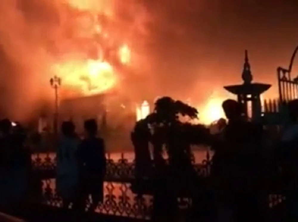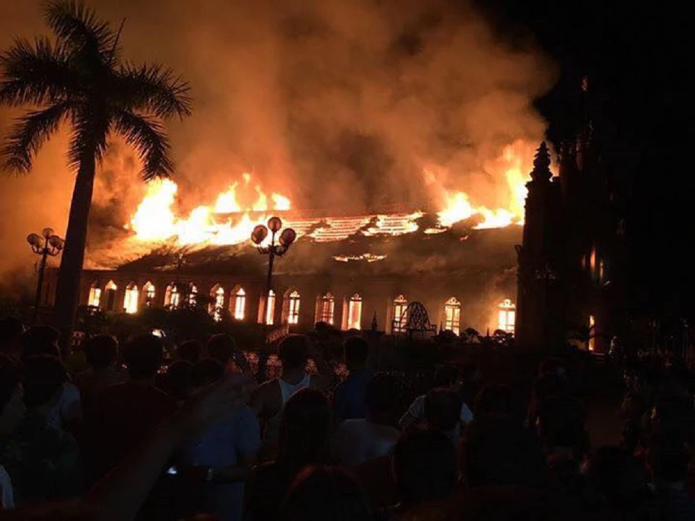 Clip nhà thờ hơn 100 năm tuổi bị ngọn lửa bao trùm trong đêm. Nguồn: FB