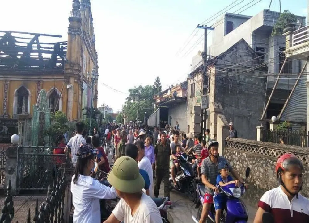 Khoảng 23 giờ đêm 5-8, người dân sinh sống trong khu vực bất ngờ phát hiện có khói và lửa bốc lên ở phía nhà thờ Trung Lao.