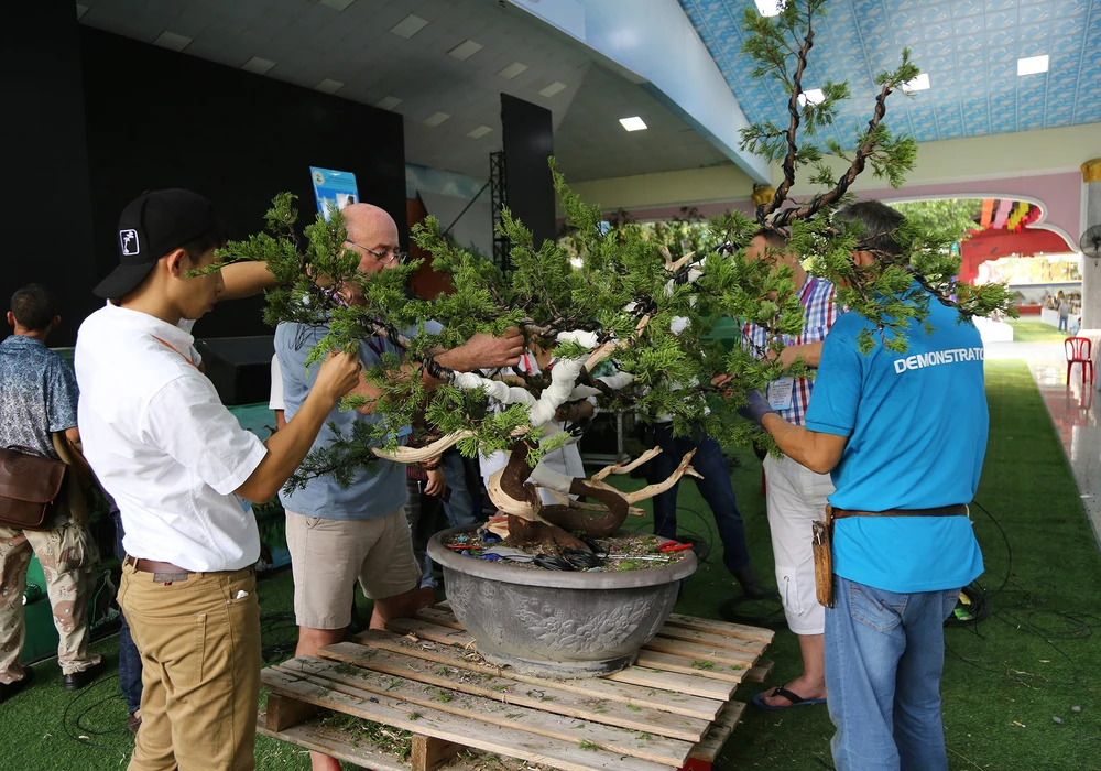 Góc dành cho các nghệ nhân quốc tế thi tài tạo hình các tác phẩm bonsai.