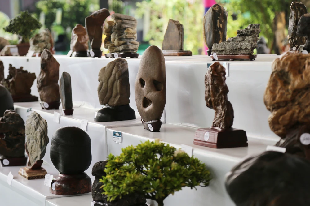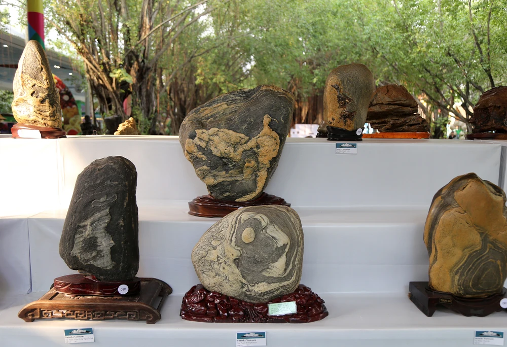 Ngoài ra, tại lễ hội còn trưng bày 250 tác phẩm suiseki, điểm nhấn là bộ sưu tập đá cảnh với những tác phẩm trị giá gần 10 tỉ đồng.