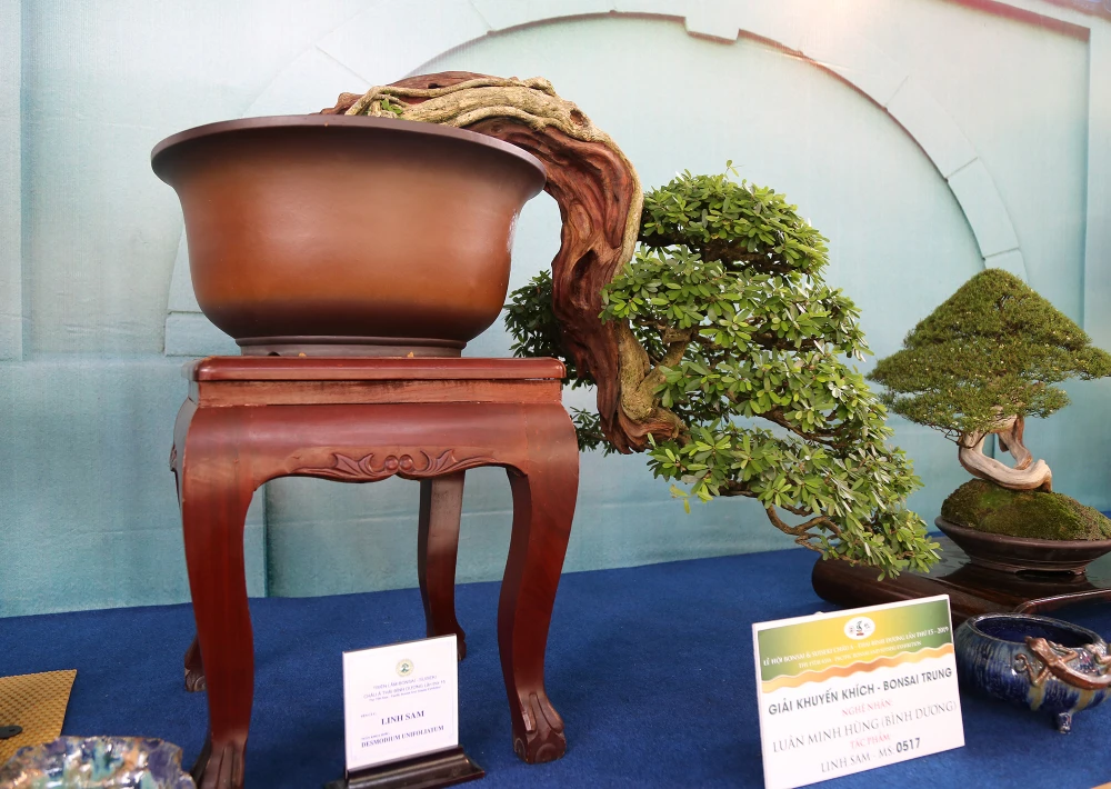 Một tác phẩm bonsai đạt huy chương vàng được trưng bày tại triển lãm.
