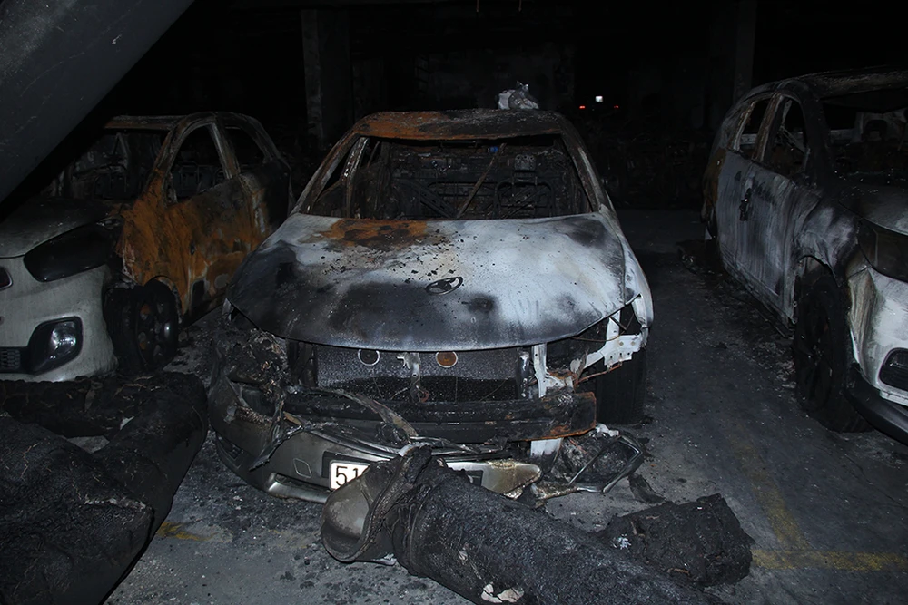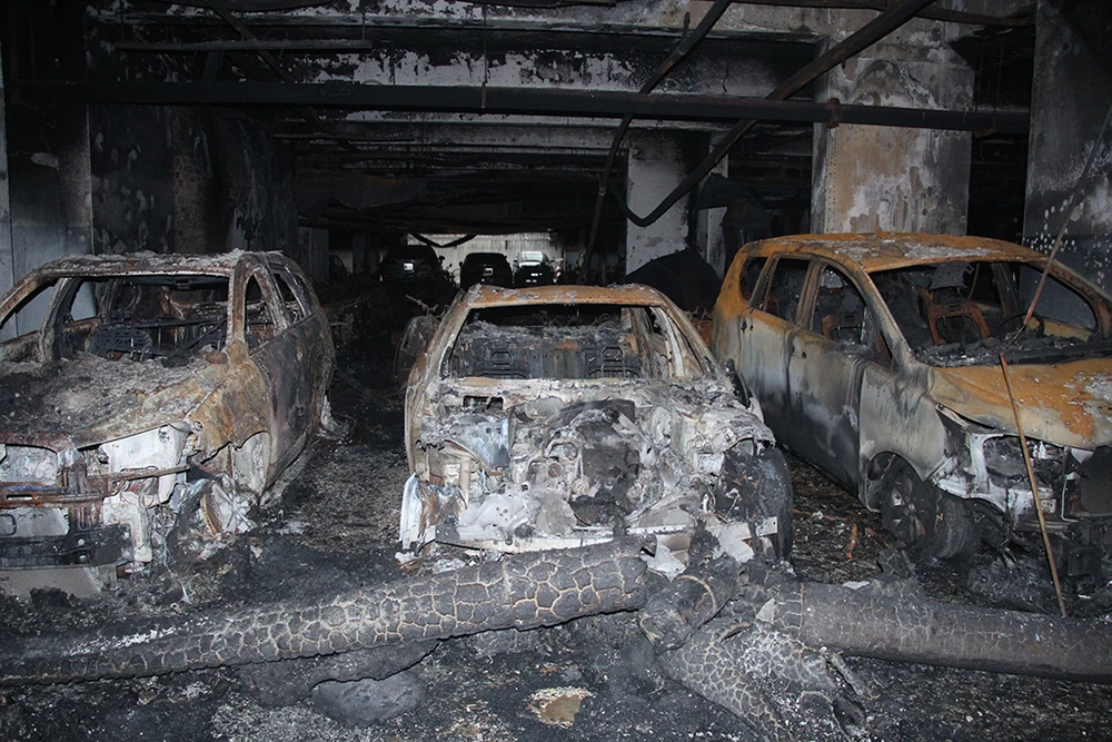 Hỏa hoạn đã khiến khoảng 150/1.000 xe máy và 13/150 ô tô các loại bị cháy; trong đó có năm ô tô bị cháy rụi.