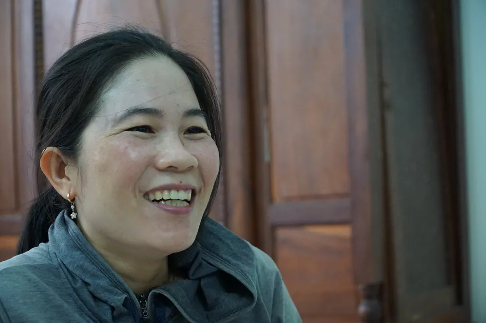 Nụ cười của chị Liên khi về ở tạm cư tại căn hộ mới. Ảnh: VH