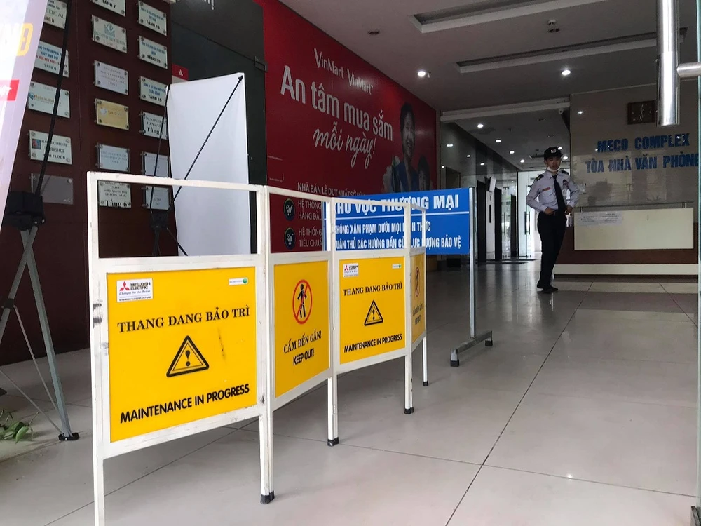 Ghi nhận của PV, chiều cùng ngày, khu vực sảnh tòa nhà HH1B – nơi xảy ra sự việc đã được quây hàng rào, thông báo hạn chế người đi vào.