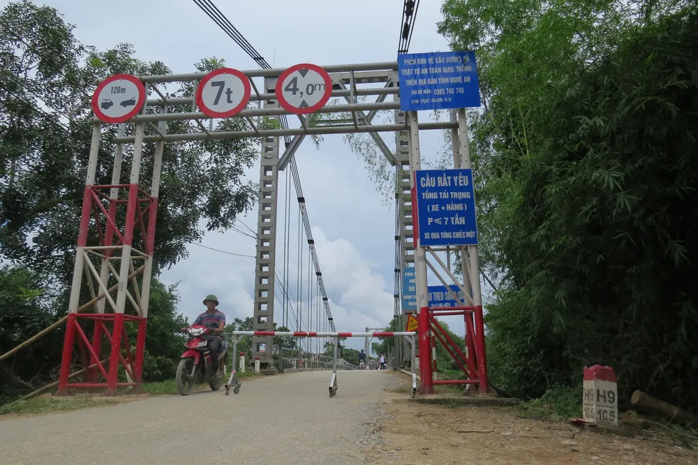 Cầu treo này bắc qua sông Giăng là huyết mạch giao thông qua trọng nối quốc lộ 46C (huyện Thanh Chương, Nghệ An) được xây dựng từ năm 1987.