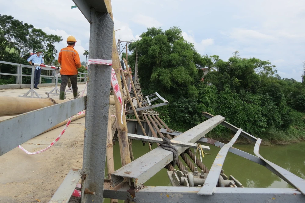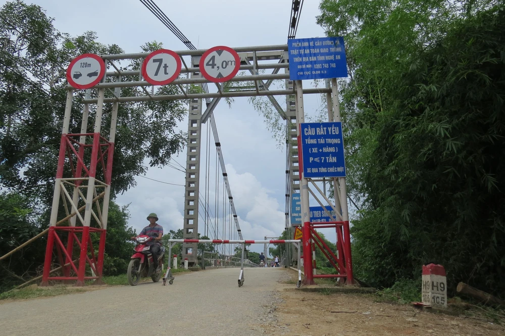Tại hiện trường vụ tai nạn cho thấy chiếc cầu treo Chợ Chùa (nằm trên huyết mạch tuyến đường 46C, huyện Thanh Chương) được xây dựng từ năm 1987, nay đã xuống cấp và cầu yếu.