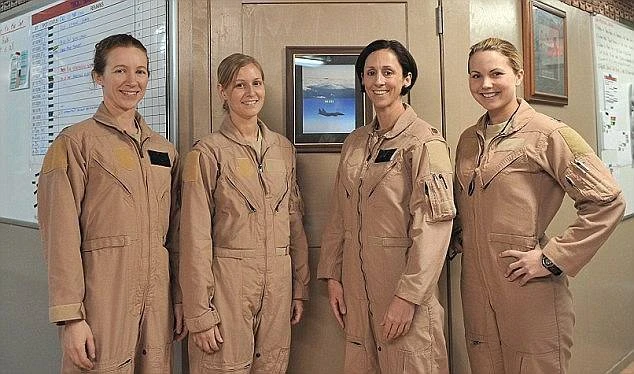 Mau (đứng thứ hai từ phải sang trái) cùng với 3 nữ đồng nghiệp khác trong lúc thi hành nhiệm vụ không quân tại Afghanistan năm 2011.