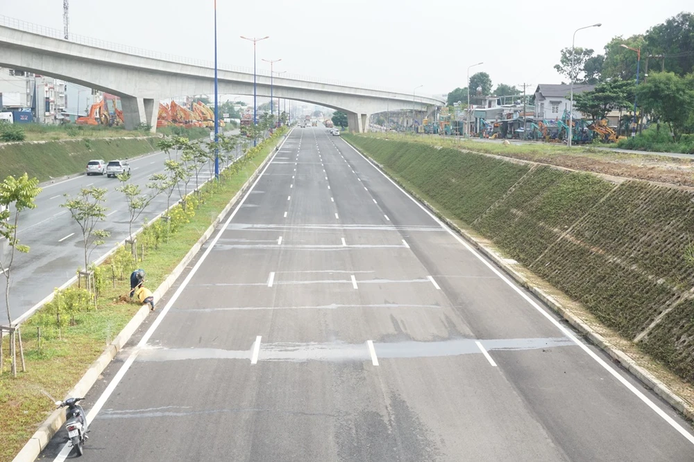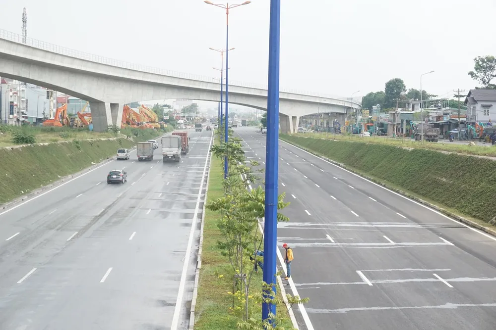 Theo ghi nhận sáng 7-11 của PV PLO, nút giao thông ĐH Quốc gia (ĐHQG) chiều dài hơn 1,8 km đã hoàn thành, mỗi chiều được phân thành bốn làn xe. Mặt đường thẳng tắp và được sơn đánh dấu phân làn xe rất kỹ càng. Hiện tại các phương tiện chỉ lưu thông một chiều từ TP.HCM - cầu Đồng Nai - Dầu Giây.