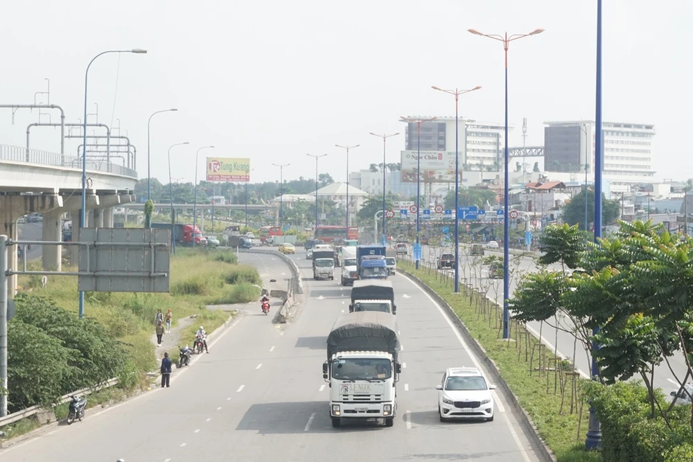 Phương tiện lưu thông từ hướng ngược lại vẫn phải di chuyển trên tuyến xa lộ Hà Nội.