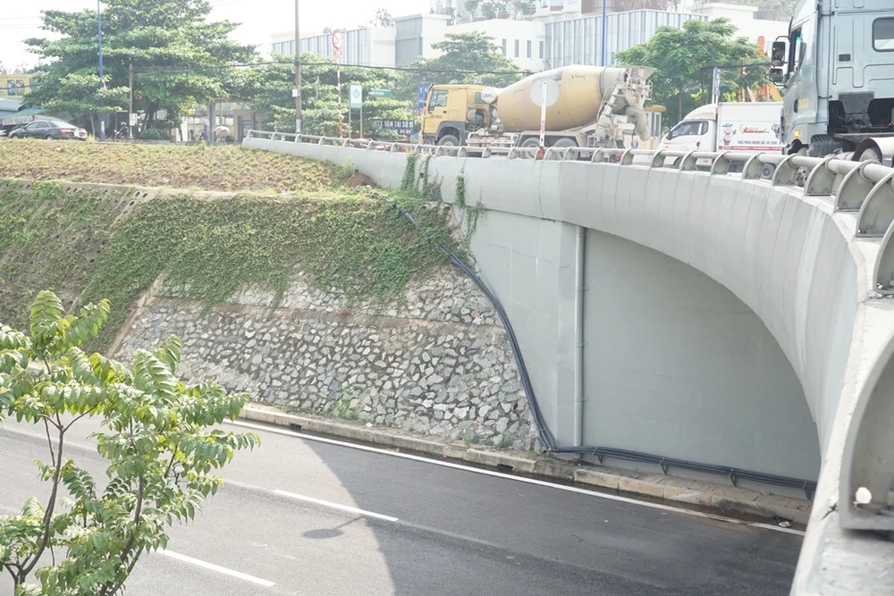 Cầu vượt qua hầm hở tại nút giao thông ĐHQG.