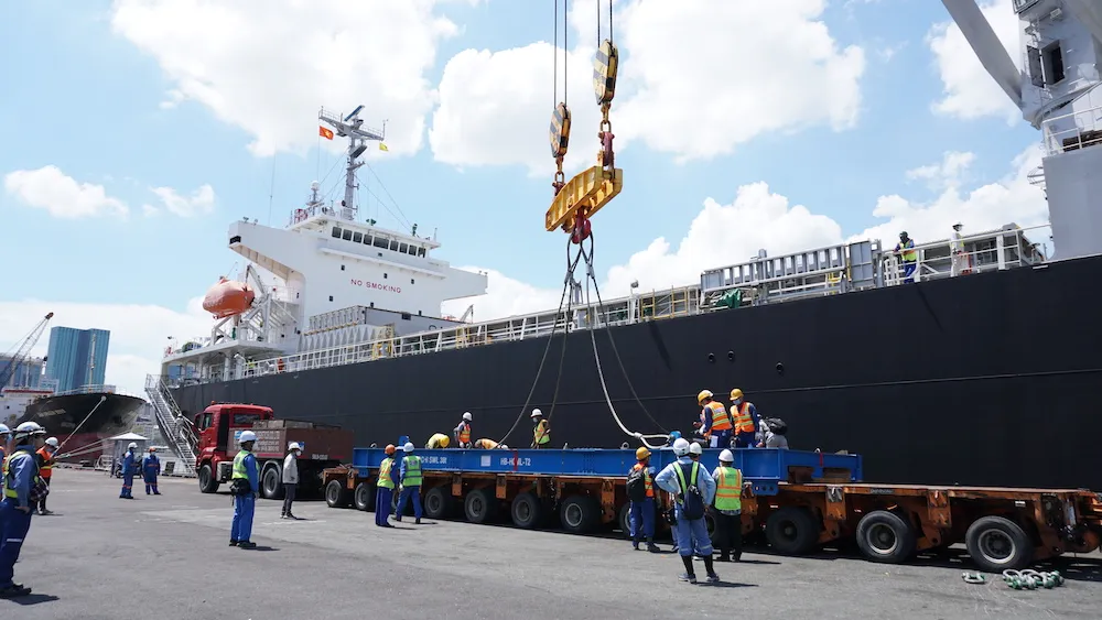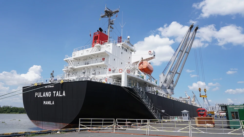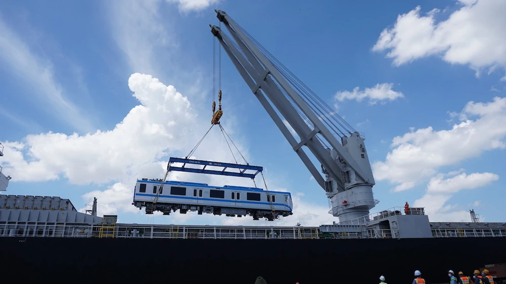 Con tàu Pulang Tala đã mang theo hai đoàn tàu metro về TP.HCM. Ảnh: MAUR.