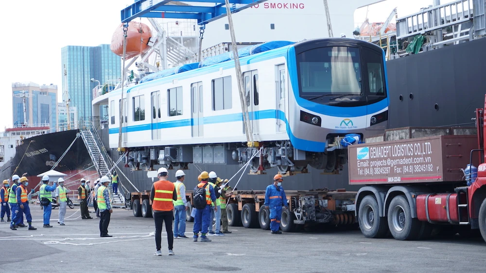 Đến nay đã có 5/17 đoàn tàu metro về tới TP.HCM. Ảnh: MAUR.