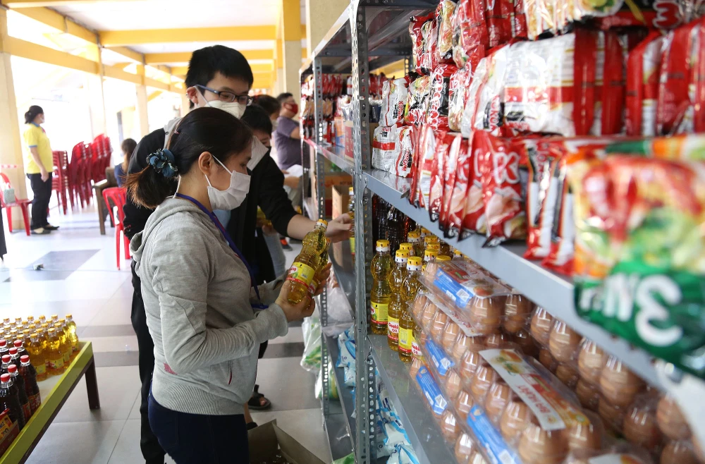 Với đơn giá 100.000 đồng, bà con nghèo sẽ được thỏa thích lựa chọn các nhu yếu phẩm như gạo, nước mắm, muối, đường… để trang trải cuộc sống trong những ngày dịch bệnh diễn biến phức tạp.