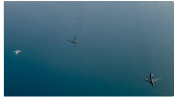 Bộ Quốc phòng Mỹ đã công bố các bức ảnh máy bay Nga bay kèm máy bay chiến đấu của Mỹ. Các quan chức cho biết cuộc diễn tập đã được thực hiện một cách an toàn.